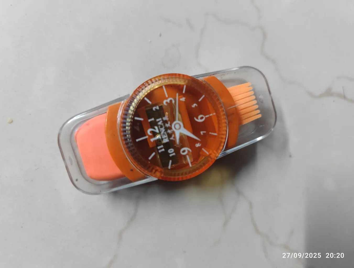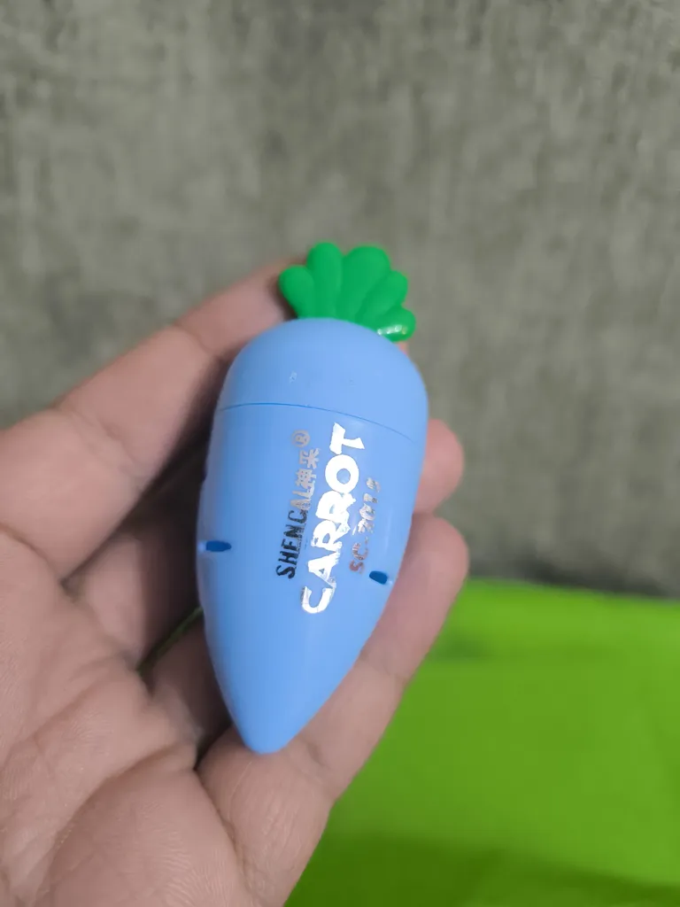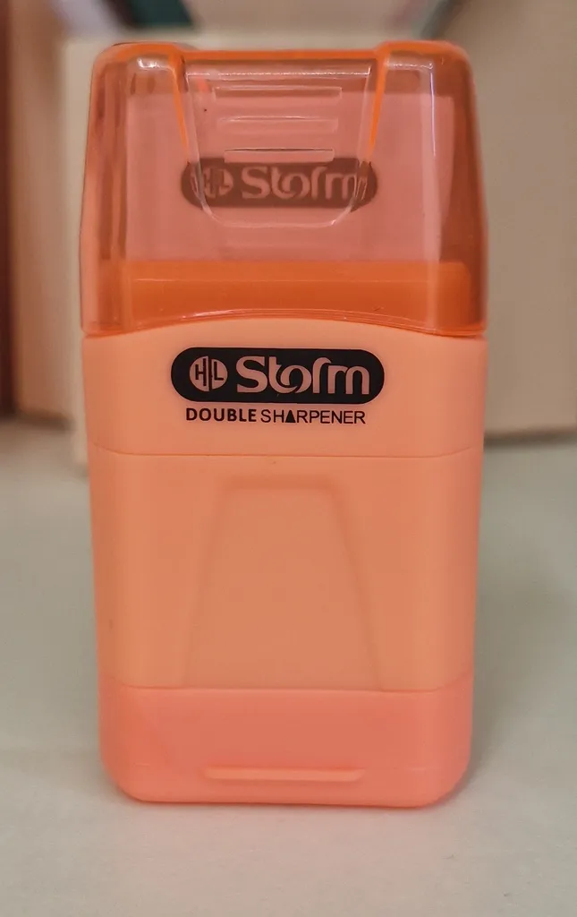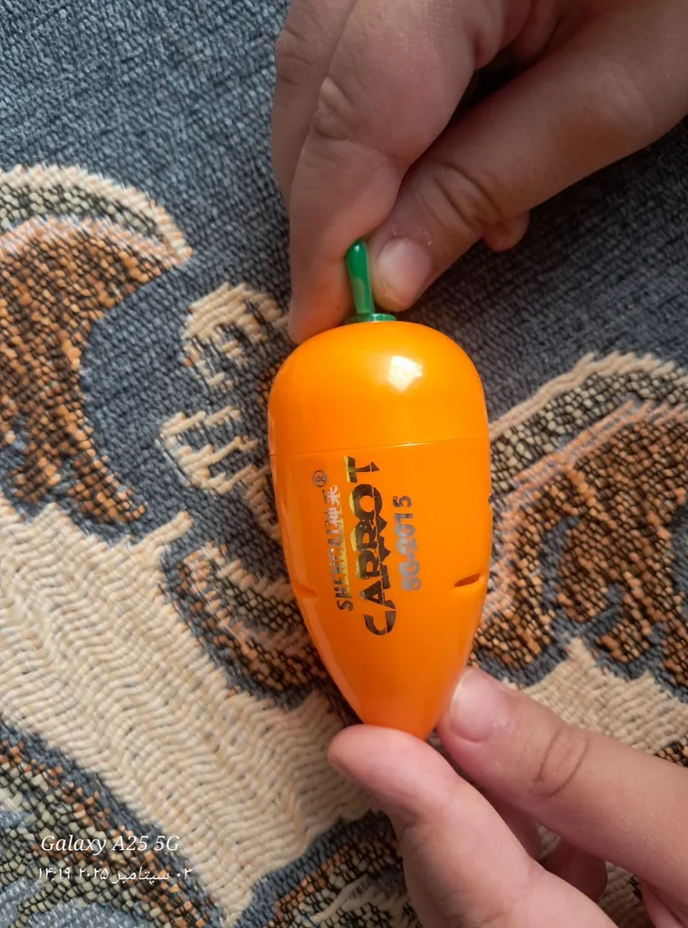 فرزانه وطن خواه : مخزن تقریبا بزرگی داره،،تراش تیزی داره،رنگ نارنجی اش بشدت جذابه،فکر میکردم پلاستیک خشک باشه اما کاملا نرم بود که امکان شکستنش رو به حداقل میرسونه،چون خیلی کوچیک نیست امکان گم شدنش کمتره