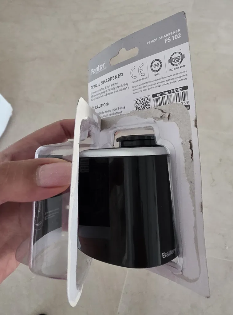 کیفیت برند پنتر که بد نیست و راضی کننده ست، باقی توضیحات رو هم دوستان دادن منتهی این وسط یه چیزی برام عجیبه!!! من پیش فرض م این بود که این محصول با باتری نیم قلمی کار می کنه و مطمئنم اینو توی توضیحات هم دیده بودم قبلا! اما انگار یا اون محصول تموم شده یا با این یکی که بزرگتره و با باتری قلمی کار می کنه جایگزین شده! خلاصه برام عجیب بود البته باتری همراه ش نبود و سایز تراش هم نسبتا بزرگ و گنده ست ولی خب کیفیت همونه. چه در حالت باتری و چه حالت دستی، با کیفیته و کار رو در میاره. تراش در حالت باتری قویه، تیغ تیز و شارپی داره منتهی باید حواست باشه زیاد مداد رو اون تو نگه ندارید