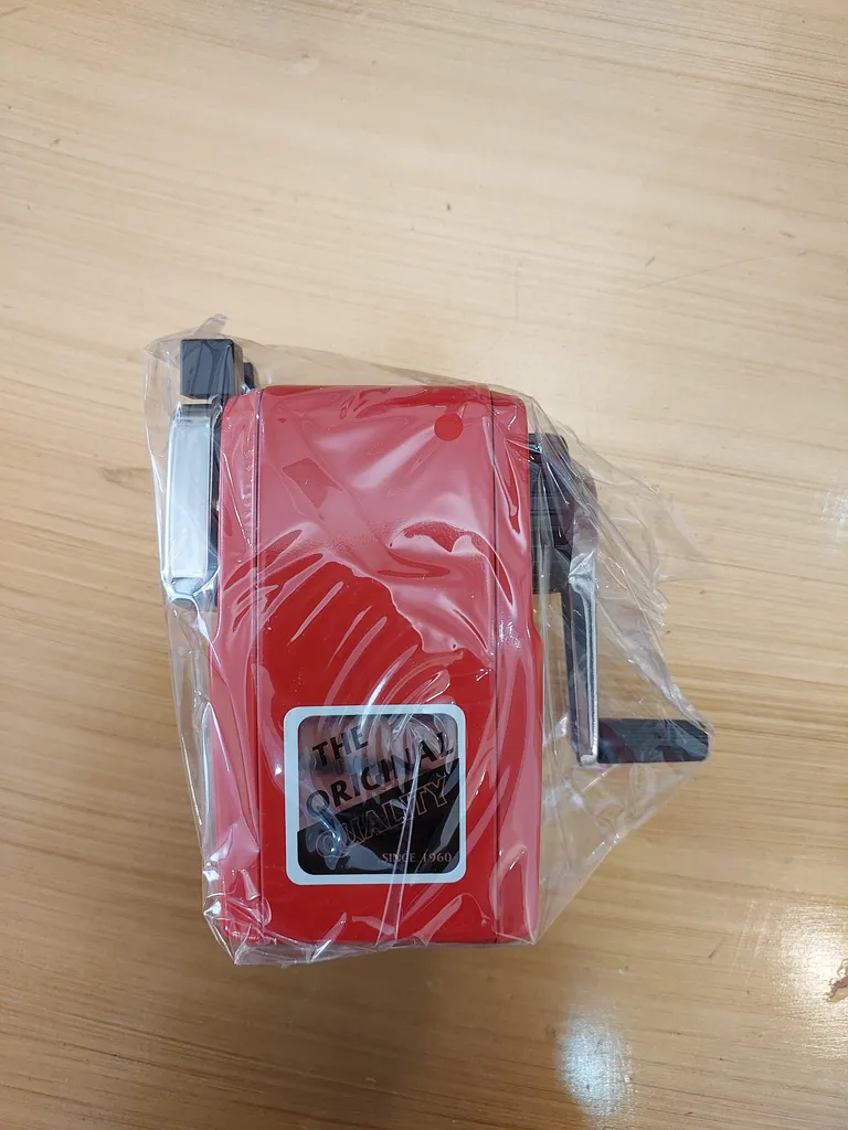 قبلا رنگ آبی این مدل رو خریده بودم راضی بودم. کیفیت تراش خوبه و نوک نمیشکنه که بخواین مداد رو هی بتراشین کوتاه تر شه. تراش خوبیه و رنگ قرمزشو برای هدیه گرفتم. جعبش یه جعبه مقوایی نازکه من فقط از خود تراش عکس گرفتم. جعبه کوچیک زیر تراش واسه نگهداری آشغالاست. جنس تراش محکمه و واسه بچه ها خوبه