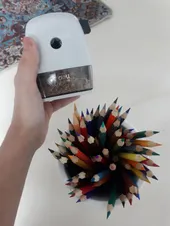 تراش ؛ برای خونه بچه دار واقعا نیازه.بدترین مداد ها رو تراش میکنه مهمتر ار همه پیچ تنظیم داده که میشه باهاش تیزیه نوک مدادو کم و زباد کرد خیلی خوبه