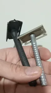 کیفیت خیلی بالا. تمام فلز. سری محکم. اصلاح خیلی روان و راحت. اگر میخواید خیلی روانتر و نرمتر اصلاح کنید تیغ رو نصف کنید.. بعد دو لبه کناری تیغ رو هم بشکونید تا از دوطرف بیرون نزنه. بعد بزارید روی سری تیغ، جوری که کاملا بچسبه به پیچ وسط. بعد هم نگهدارنده رو بزارید و سفت کنید. از خودتراش های یکبار مصرف نرمتر و روانتر اصلاح میکنه