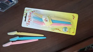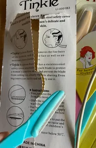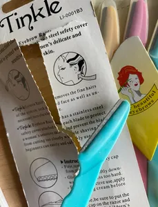 من تیغ ابرو تینکل سفارش دادم که عکسش تو سایت هست اما چیزی که برام فرستادن یه برند فیک هست، که تیغش شیار نداره و صاف هست، یه تیغ صاف و به شدت کند که انقدر برجور تیز هست صورت رو میبره