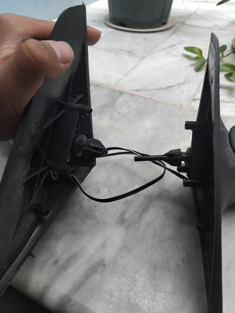 رو دری هارو باز کردم، آینه دو تا پیچ داشت، باز که کردیم از راهنمای گلگیر سیم برق گرفتیم برای چراغ آینه ها و به ترتیب دو تا پیچ و رو دری رو بستیم.