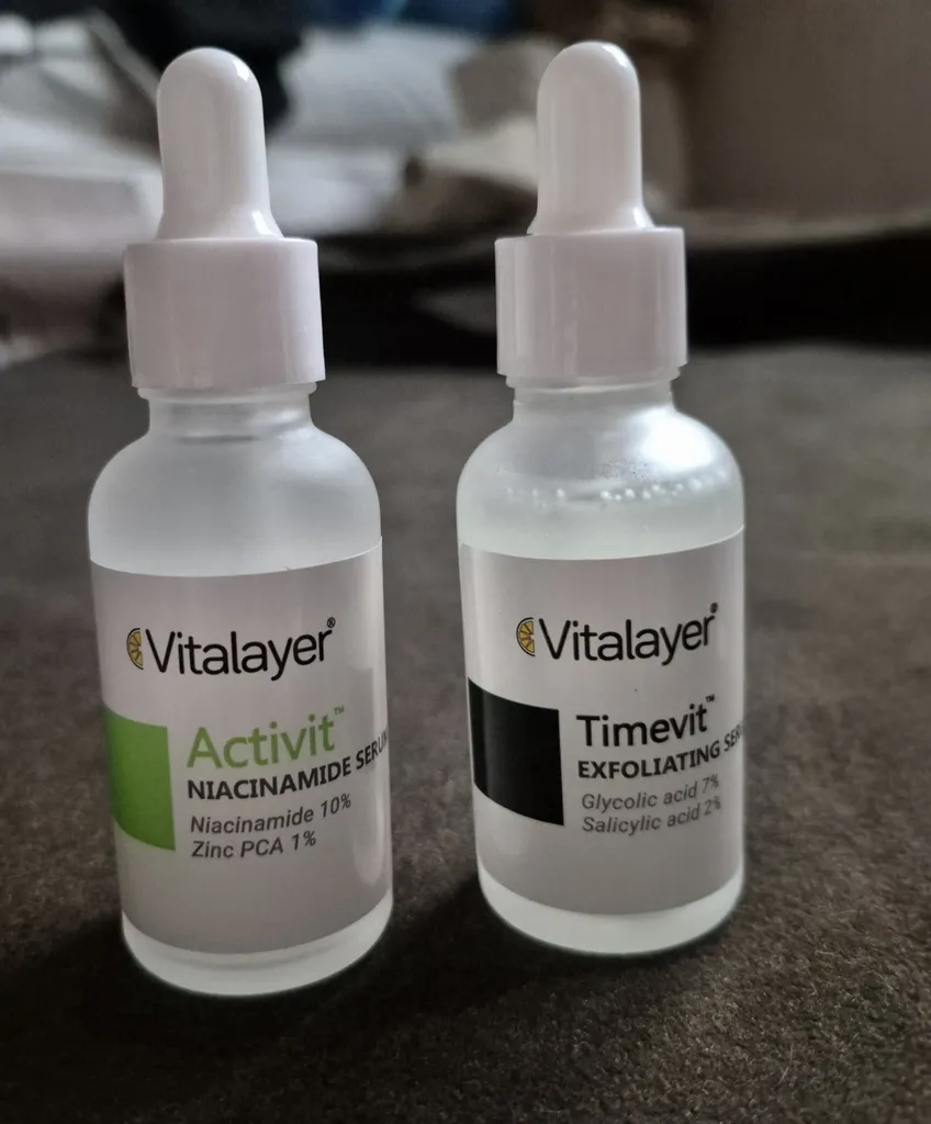 از محصولات ویتالیر سرم نیاسینامیدش بهترین محصولی بود که استفاده کردم و بسیار راضی بودم. اولین بار از طریق کامنتهای مثبت تصمیم به امتحانش گرفتم. پوست صورتم مخلوط هست و از هیچ نوع کرمی روی اون نمی تونستم استفاده کنم، و اولین واکنشش به هر گونه کرم و لوازم آرایشی جوش و چربیِ زیر پوستی بود. روتین نیاسینامید رو بصورت استفاده ی صبح و شب شروع کردم. هیچگونه چربی روی پوست باقی نمی گذاره و کاملا جذب پوست میشه. در کل پوستم رو خوشحال کرده.