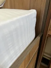 - ⬤ ابعاد ملحفه و روتختی : ملحفهها و روتختیها نیز باید با ابعاد تخت خواب و تشک هماهنگ باشند. ملحفههای بزرگتر معمولاً برای تشکهای بزرگتر مناسب هستند. همچنین، روتختیها باید به اندازه کافی بزرگ باشند تا تمام سطح تخت را پوشش دهند و از لبهها آویزان شوند.