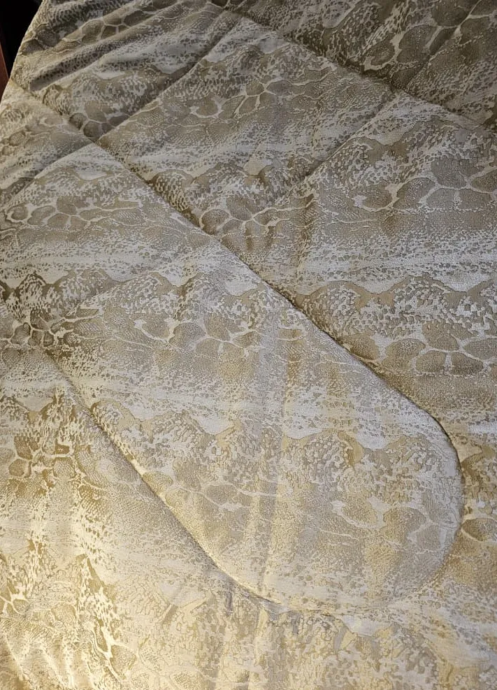 - ⬤ پارچه ژاکارد : این نوع پارچه با الگوهای بافتی خاص تولید میشود و معمولاً از الیاف طبیعی یا مصنوعی ساخته میشود. پارچه ژاکارد به دلیل طراحیهای زیبا و بافت محکم، برای سرویس خوابهای لوکس و شیک مناسب است. با این حال، ممکن است قیمت بالاتری داشته باشد و نیاز به مراقبت بیشتری داشته باشد.