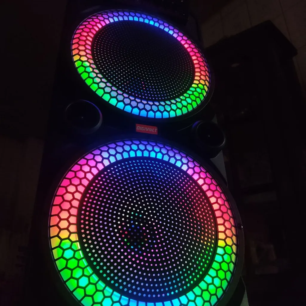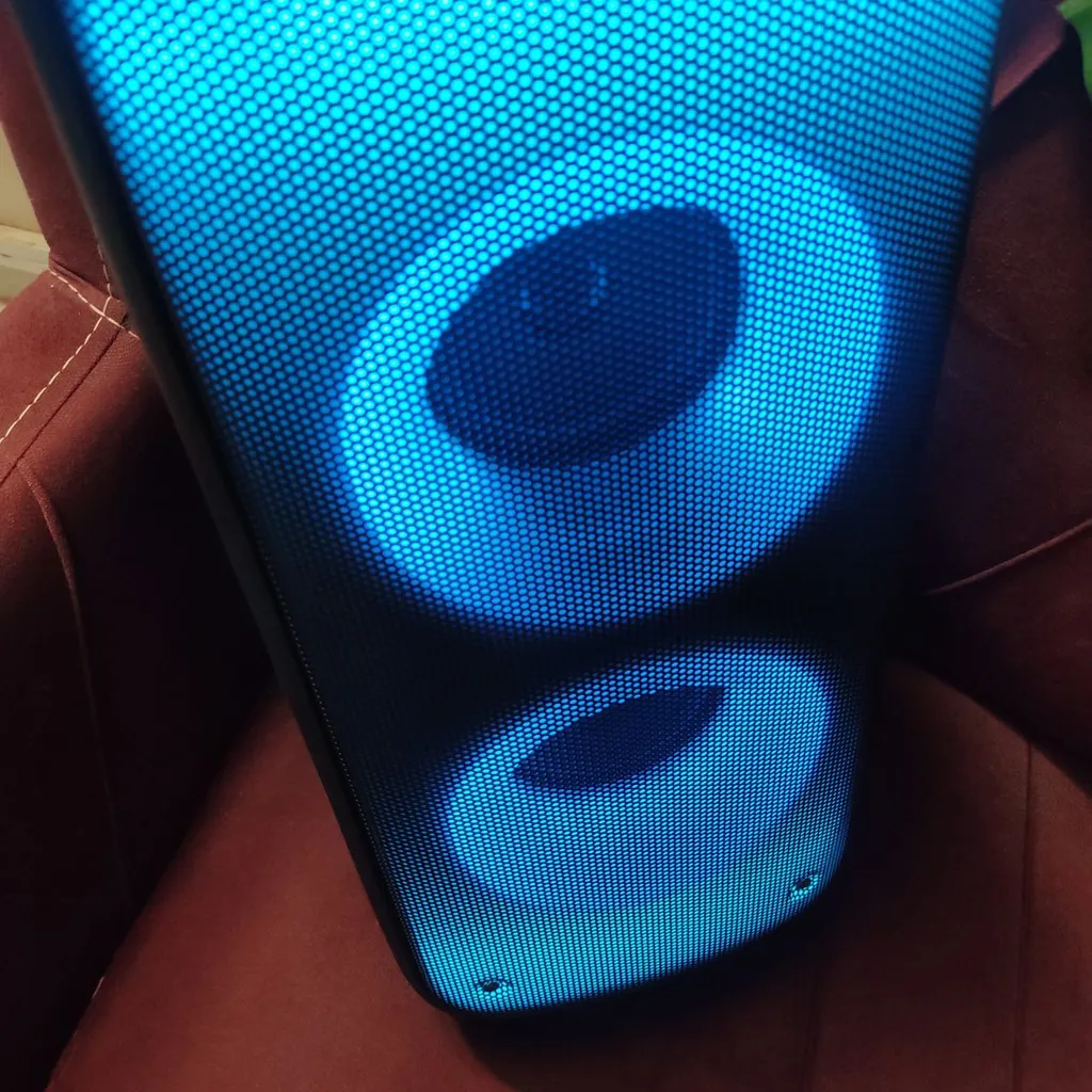 - ⬤ نورپردازی LED : خریداران به وجود نورپردازی LED در برخی اسپیکرها اشاره کردهاند و بیان کردهاند که این ویژگی به جذابیت بصری اسپیکر افزوده و تجربه شنیداری را به یک تجربه دیداری تبدیل میکند. این امر بهویژه در مهمانیها و جشنها بسیار مورد توجه قرار میگیرد.