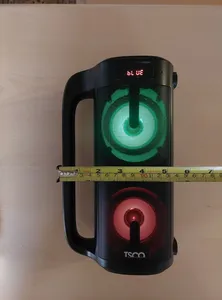 سه روزی هست دارم استفاده میکنم کیفیت صدا بلندی ووضوحش خوبه اکولایزر رو روی ۳ بگذارید اگه میخواهید کیفیت اصلی رو دریابید یه آهنگ بیس دار از اینترنت پخش کنید تا متوجه کیفیتش بشوید جوابگوی فضای تا ۱۰۰ متر هست امکاناتش هم خوبه خاصیت کاراکویه هم داره یعنی میتونید یه آهنگ بیکلام یا باکلام پخش کنید وبا میکروفن همراه آهنگ بخونید رفص نور داره البته اگه خواستید میتونید غیر فعالش کنید ۳ ثانیه دکمه led روی دستگاه رو بگیرید خاموش میشه کیفیت میکروفون بیسیمش هم عالیه تنظیمات میکروفون سمت چپ دستگاه است شامل ولوم واکو وتاخیر