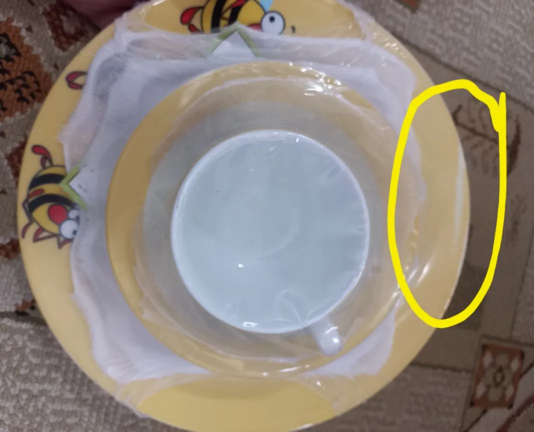 فروشنده امیر کالام پول درجه عالی رو میگیره و درجه ۳ می فرسته ، اولش دیدم روی برچسب مدل و درجه ، خط خوردگی داره ، گفتم شاید جعبه برای یه طرح دیگه و درجه ۳ برای اون مدل باشه ولی با دیدن رنگ پریدگی روی بشقاب فهمیدم هم جعبه اشتباهی هست و هم خود کالا درجه ۳ که مرجوع کردم