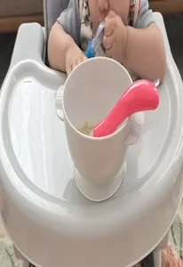 سر قاشق به قدری نرمه که نمیشه باهاش به جز پوره و فرنی به بچه داد.به روش بی ال دبلیو که اصلا نمیشه به بچه داد چون عین فنر غذاها پرت میشن این ور اون ور! برای بچه یکساله یکم بزرگه