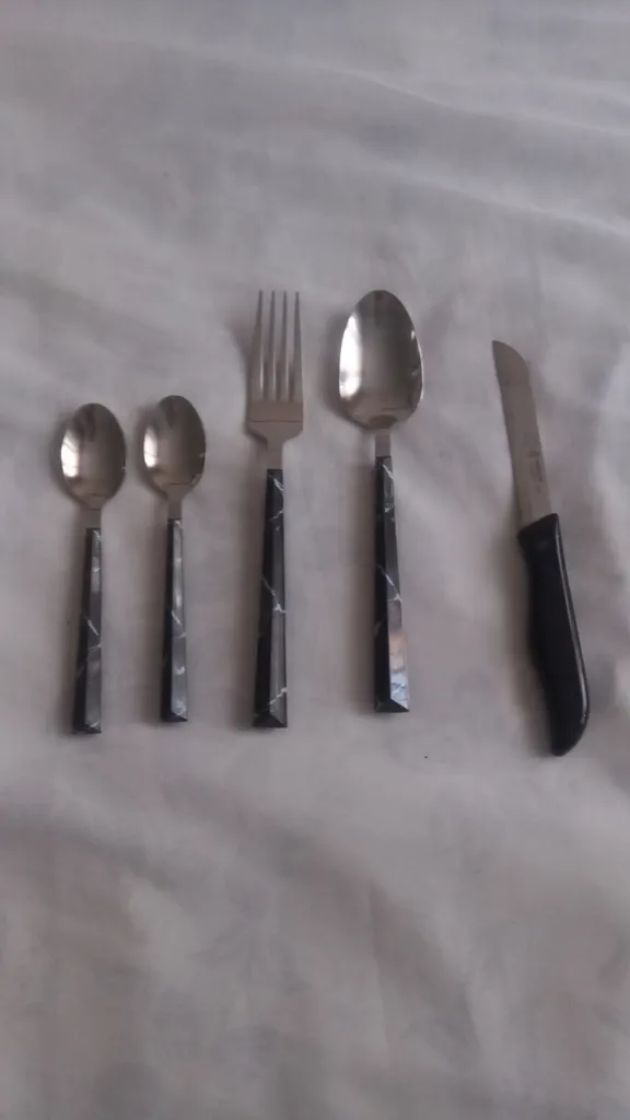 - ⬤ سرویس قاشق و چنگال 3 پارچه : این سرویس شامل 1 عدد قاشق، 1 عدد چنگال و 1 عدد کارد است که برای استفاده روزمره مناسب است. خریداران به طراحی ساده و کیفیت ساخت آن اشاره کردهاند، اما برخی از آنها به نازکی اقلام اشاره کردهاند.
