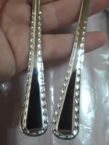 - ⬤ جنس و کیفیت ساخت : یکی از مهمترین نکات در خرید سرویس قاشق، کارد و چنگال، جنس و کیفیت ساخت آنهاست. خریداران به طور مکرر به این نکته اشاره کردهاند که جنس استیل باید از نوع ضد زنگ و با کیفیت باشد. بسیاری از خریداران به استفاده از استیل 18/10 اشاره کردهاند که به دلیل ترکیب بالای نیکل و کروم، مقاومت بیشتری در برابر زنگ زدگی و خوردگی دارد. همچنین، برخی خریداران از تجربههای منفی خود در مورد سرویسهایی که از استیل بیکیفیت ساخته شدهاند، صحبت کردهاند و به زود زنگ زدن و تغییر رنگ آنها اشاره کردهاند.