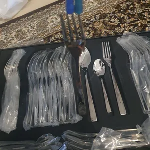 - ⬤ سرویس قاشق و چنگال 120 پارچه : این سرویس شامل تعداد زیادی قاشق و چنگال است که برای خانوادههای بزرگ و مهمانیها مناسب میباشد. خریداران به کیفیت بالای استیل و طراحی مدرن آن اشاره کردهاند، اما برخی از آنها به نازکی قاشقها و چنگالها اشاره کردهاند.