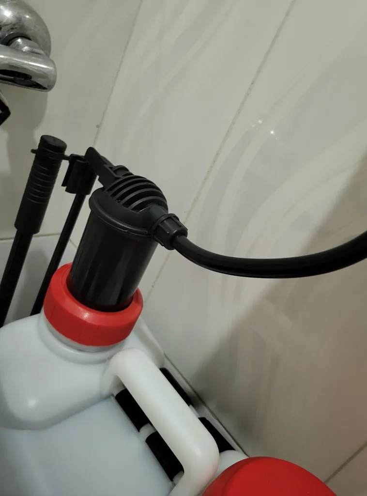 - ⬤ طول شلنگ : طول شلنگ سمپاش باید به گونهای باشد که کاربر بتواند به راحتی به نقاط دورتر دسترسی پیدا کند. شلنگهای بلندتر معمولاً مورد استقبال قرار میگیرند، زیرا این ویژگی به راحتی کاربر در حین استفاده کمک میکند و امکان آبیاری یا سمپاشی در مناطق وسیعتر را فراهم میآورد.