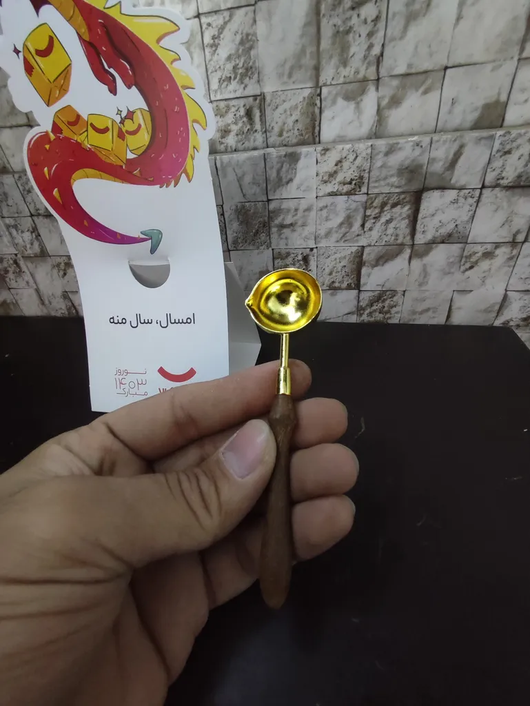 عاشق فسقلی مهر و موم ؛ قشنگه، ظریف ساخته شده کیفیتشم برای کار خودش خوبه ، عکس طلایی نبود داخل عکس های محصول، طلایی سفارش دادم و کاملا مطابق تصویر و با همون رنگی که سفارش دادم به دستم رسید، رضایت داریم از خرید، و به کسایی که با مهر و موم می خوان محصولی رو بسته بندی کنن و بهش نیاز دارن پیشنهاد میکنم ، هر چند کار این رو میشه با یه قاشق معمولی یا چایی خوری در آورد، ولی باز این مخصوصا این کار هست