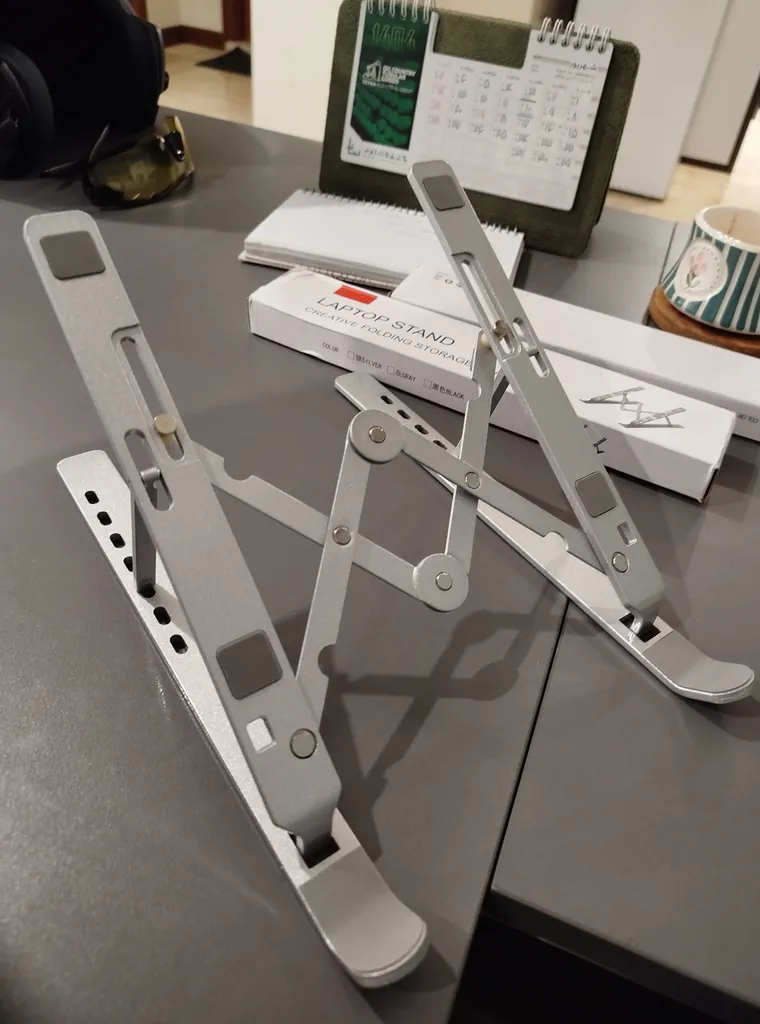 - ⬤ پایههای نگهدارنده لپتاپ : این پایهها به عنوان لوازم جانبی برای افزایش ارتفاع و زاویه لپتاپ طراحی شدهاند. خریداران از این پایهها به عنوان یک راهکار مؤثر برای بهبود وضعیت نشستن و کاهش خستگی در حین کار یاد کردهاند. این پایهها معمولاً قابلیت تنظیم ارتفاع دارند و کاربران از راحتی استفاده از آنها راضی هستند. با این حال، برخی از کاربران به عدم ثبات و لق زدن پایهها در برخی مدلها انتقاد کردهاند و بیان کردهاند که ممکن است در حین کار با لپتاپ، نیاز به دقت بیشتری داشته باشند.