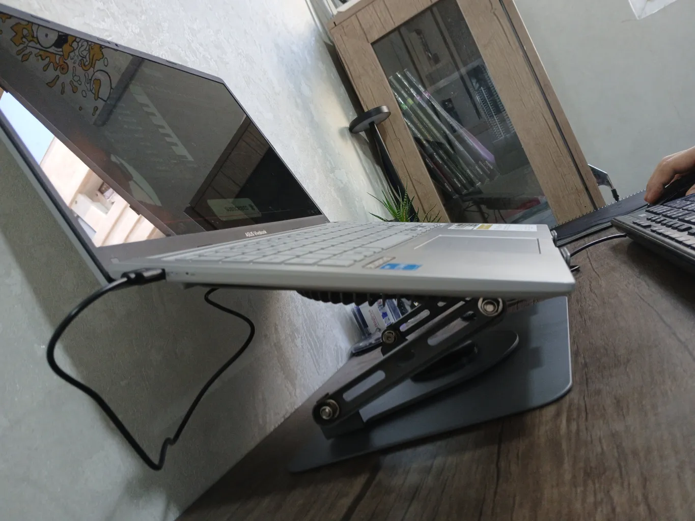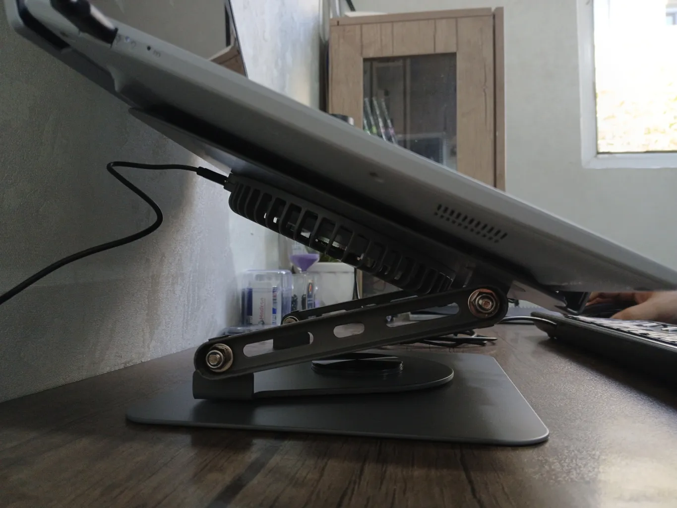 - ⬤ قابلیت تنظیم ارتفاع : امکان تنظیم ارتفاع و زاویه پایه، راحتی بیشتری را برای کاربران فراهم میکند. خریداران به مدلهایی که این قابلیت را دارند، بیشتر تمایل دارند و این ویژگی به آنها کمک میکند تا در طولانیمدت از لپتاپ استفاده کنند بدون اینکه دچار خستگی شوند. این قابلیت به ویژه برای افرادی که ساعات طولانی با لپتاپ کار میکنند، بسیار مهم است.
