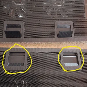 - ⬤ پدهای سیلیکونی ضد لغزش : این پدها به عنوان لوازم جانبی برای جلوگیری از لغزش لپتاپ روی پایه خنککننده طراحی شدهاند. خریداران از این پدها به عنوان یک ویژگی مثبت یاد کرده و به کارایی آنها در حفظ ثبات لپتاپ در حین کار اشاره کردهاند. این پدها به خوبی از خراشیدگی و آسیب به بدنه لپتاپ جلوگیری میکنند و کاربران از کیفیت و دوام آنها راضی هستند. با این حال، برخی از کاربران به این نکته اشاره کردهاند که در صورت استفاده طولانیمدت، ممکن است چسبندگی پدها کاهش یابد.
