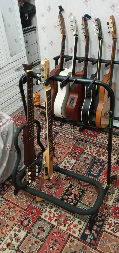 - ⬤ پایههای نگهدارنده ساز : این پایهها برای نگهداری سازهای مختلف مانند گیتار، ویولن و سنتور طراحی شدهاند. خریداران به استحکام و قابلیت تنظیم ارتفاع این پایهها اشاره کرده و از آنها به عنوان گزینهای مطمئن برای نگهداری سازهای خود یاد میکنند. اما برخی از کاربران به مشکلاتی مانند عدم ثبات کافی و احتمال لغزش ساز در حین استفاده اشاره کردهاند.