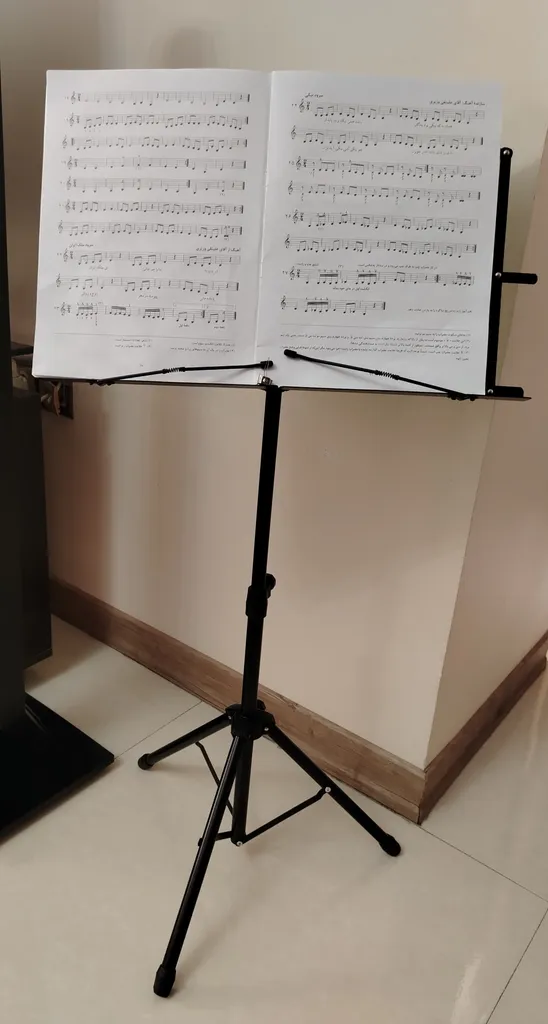 - ⬤ پایههای نت : این پایهها برای نگهداری نتهای موسیقی طراحی شدهاند و معمولاً دارای قابلیت تنظیم ارتفاع و زاویه هستند. خریداران از طراحی جمعشونده و قابلیت حمل آسان این پایهها ابراز رضایت میکنند. اما برخی از کاربران به کیفیت ساخت و استحکام پایهها انتقاد کرده و از احتمال شکستن آنها در استفاده مداوم ابراز نگرانی کردهاند.