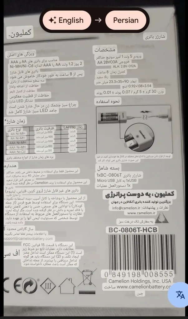 - ⬤ قابلیت تشخیص نوع باتری : برخی از شارژرها قابلیت تشخیص نوع باتری را دارند که این ویژگی به بهینهسازی فرآیند شارژ کمک میکند و خریداران از این ویژگی راضی بودهاند.
