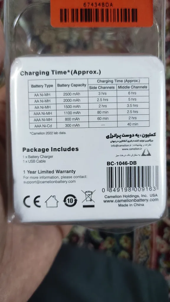 - ⬤ قدرت شارژ : قدرت شارژ معمولاً 3 ولت و 200 میلیآمپر است که به شارژ سریعتر باتریها کمک میکند. خریداران از سرعت شارژ بالا و کارایی مناسب این شارژرها ابراز رضایت کردهاند و این موضوع به عنوان یک نکته مثبت در نظرات آنها ذکر شده است.