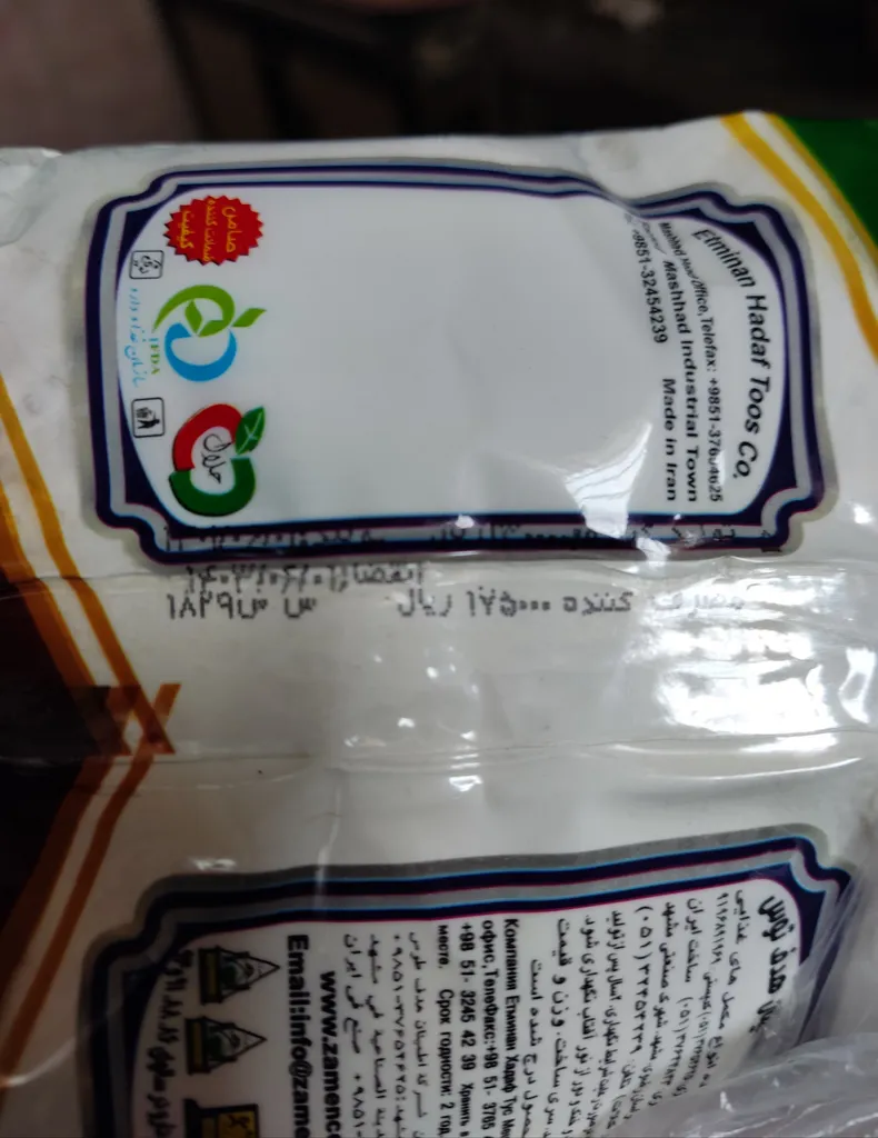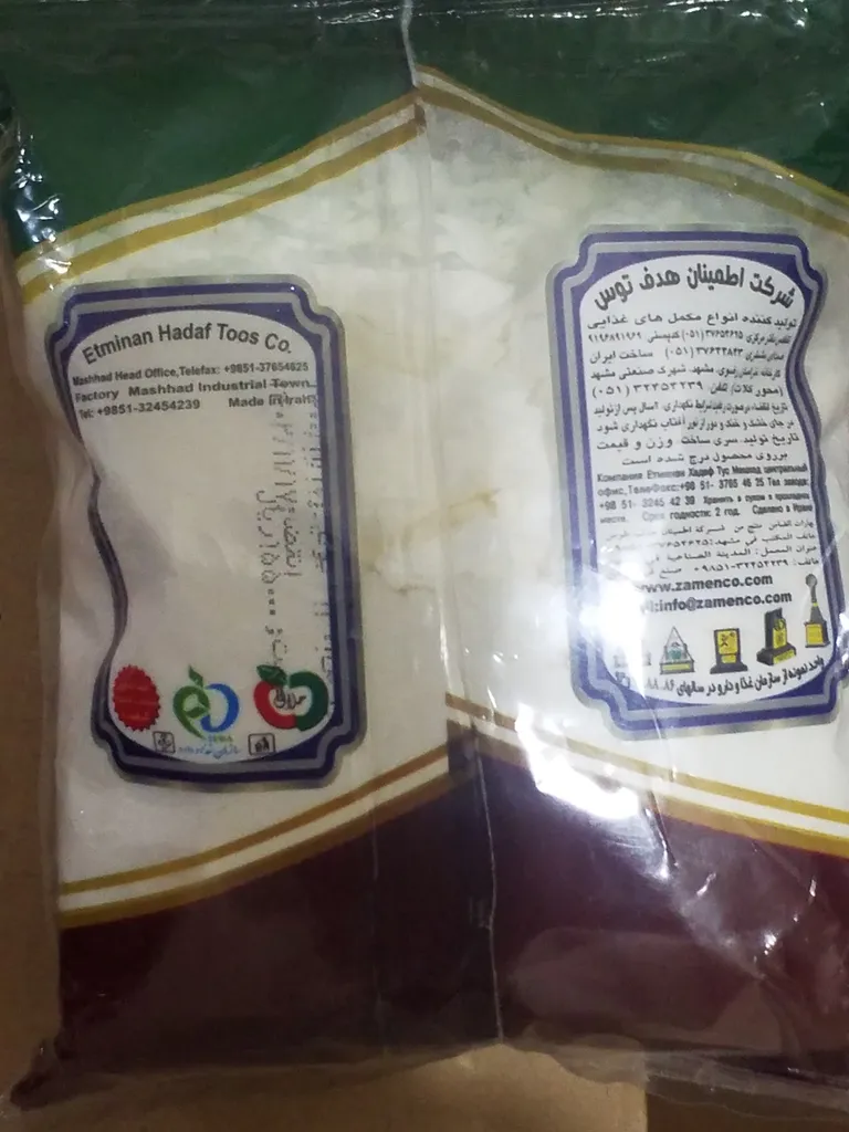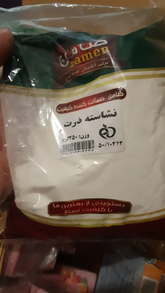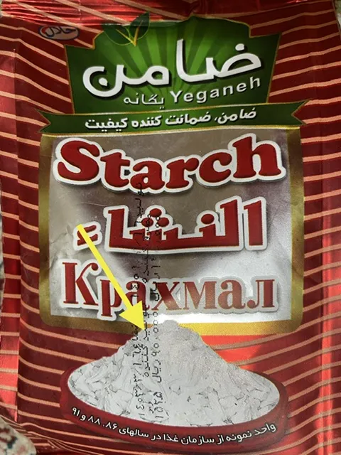 خریدار بدون نام : نشاسته ؛ درباره کیفیت محصول فعلا نمی تونم نظر بگم بعد از استفاده نظرم رو مجدد می نویسم اما استعلام غذا دارو گرفتم قبول نکرد ،عکس گذاشتم اگر دیجی کالا تأئید کنه می تونید ببینید