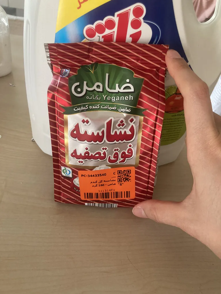 نشاسته ؛ درباره کیفیت محصول فعلا نمی تونم نظر بگم بعد از استفاده نظرم رو مجدد می نویسم اما استعلام غذا دارو گرفتم قبول نکرد ،عکس گذاشتم اگر دیجی کالا تأئید کنه می تونید ببینید