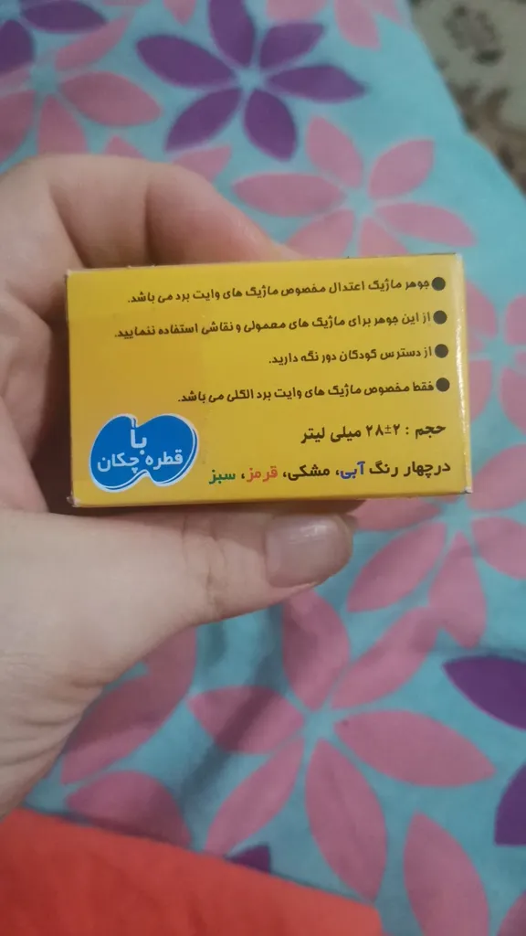 احمد سایه خفت : جوهر ماژیک وایت برد اعتدال ؛ من امروز به دستم رسید، استفاده هم کردم ، فقط حواستون به اینکه برای ماژیک های خوبه که الکلی هستند ، من یکی از ماژیکام الکلی بود یکی شون الکلی نبود . حواستون به این نکته باشه