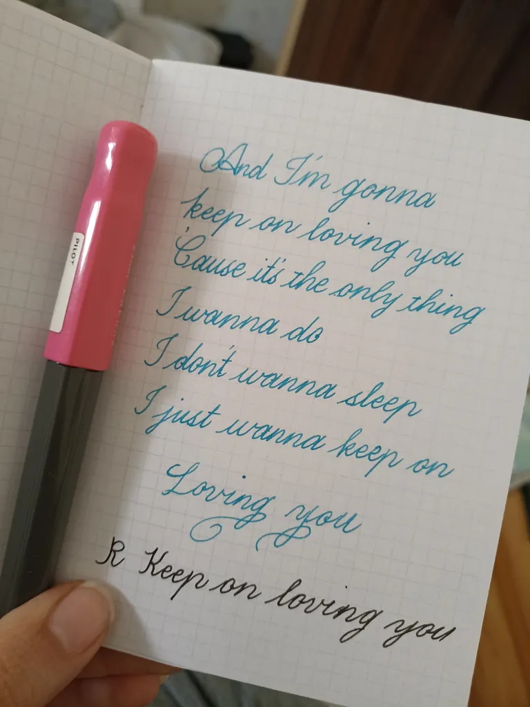 نوشتار درشت و نامتوازنی داره که بنظرم بدلیل رقیق بودن بیش از حدش هست که موجب میشه موقع نوشتن از خودنویس جوهر نامتقارنی بیرون بیاد! البته نه زیاد و ممکنه خیلی ها متوجه نشن این موضوع رو مگر از نمونه های خارجی استفاده کنن یا همیشه از خودنویس استفاده کنن مثل من.