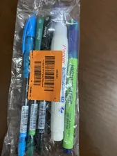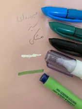 محصول فوق ؛ خودکار ها رنگ مشکی و سبز و فیروزه ای و ماژیک رنگ سبز فرستاده شده و خودکار ها بسیار کم رنگ و بی کیفیت هستند