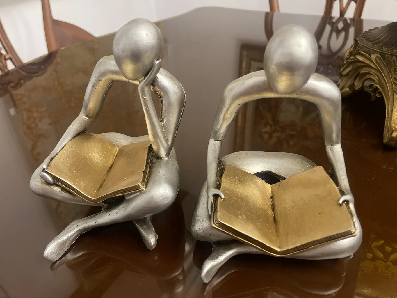 - ⬤ مجسمه نگهدارنده کتاب : این نوع مجسمهها به عنوان نگهدارنده کتابها استفاده میشوند و معمولاً طراحیهای خلاقانهای دارند. خریداران از کاربردی بودن و طراحی جذاب آنها ابراز رضایت کردند، اما برخی از آنها به کیفیت پایین و عدم استحکام اشاره کردند. نکته مهم: طراحی خلاقانه و کاربردی این مجسمهها میتواند به نظمدهی و زیبایی قفسه کتابها کمک کند.