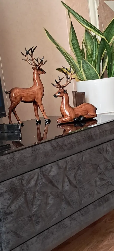 - ⬤ مجسمه گوزن : این مجسمهها به دلیل طراحی زیبا و طبیعی خود محبوب هستند. خریداران از جزئیات دقیق و زیبایی آنها ابراز رضایت کردند، اما برخی از آنها به کیفیت پایین رنگآمیزی و آسیبپذیری در برابر ضربه اشاره کردند. نکته مهم: طراحی طبیعی و زیبا این مجسمهها میتواند به فضای سبز و دکوراسیون داخلی جلوه خاصی ببخشد.