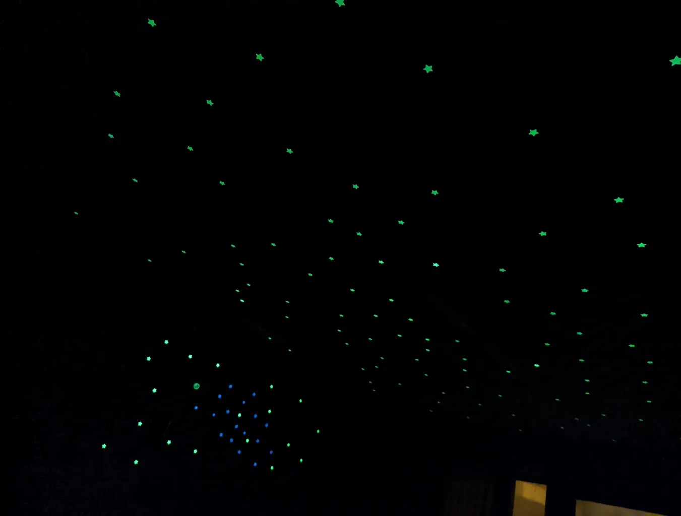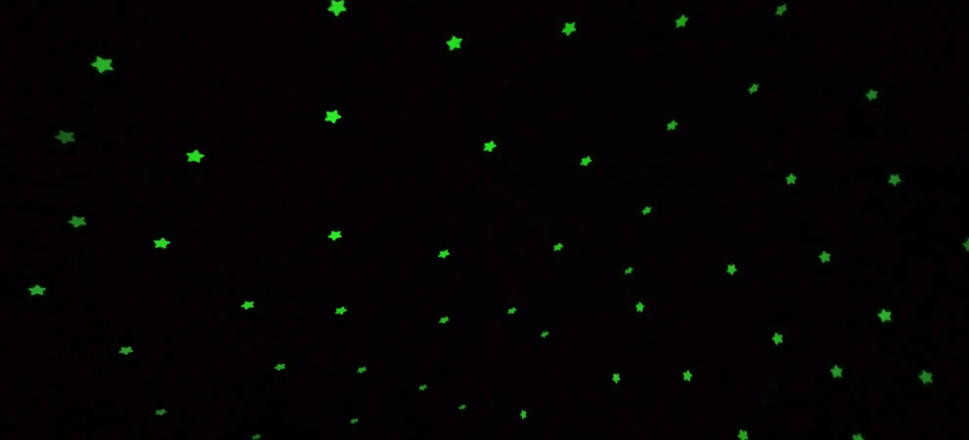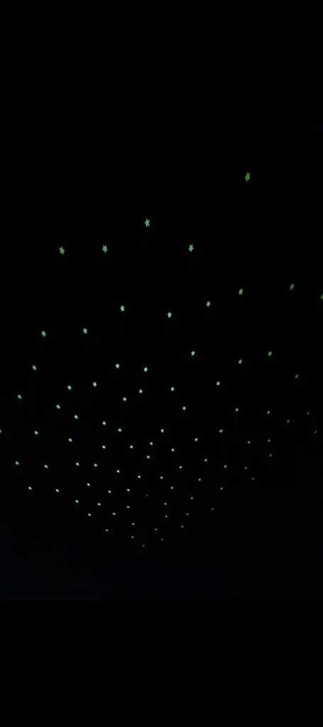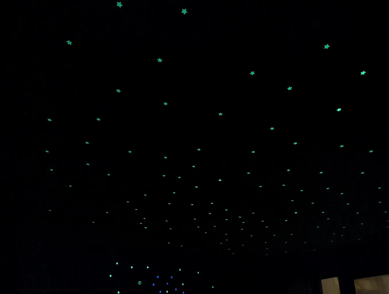 فقط دقت کنید اگر بعضی هاش روشن نشد چون ب نور احتیاج داره وقتی جلوی نور باشه مثلا وقتی ب سقف زدین لامپ ک ی مدت روشن باشه نورو جذب میکنه و بعداز خاموشی کاملا میدرخشن