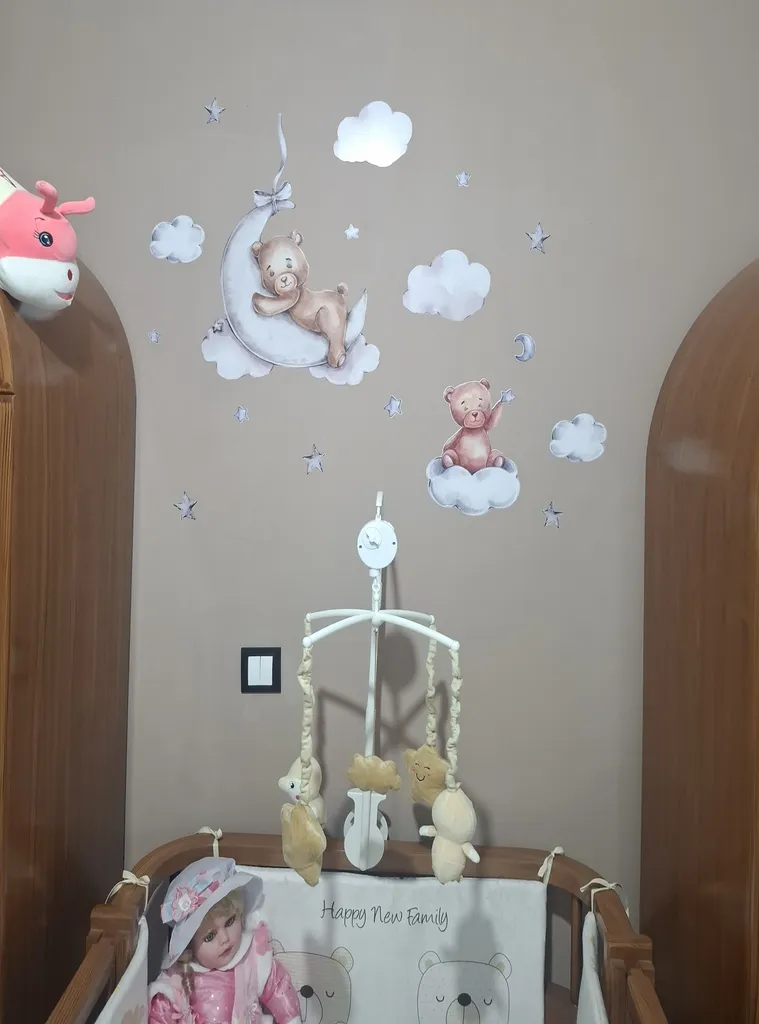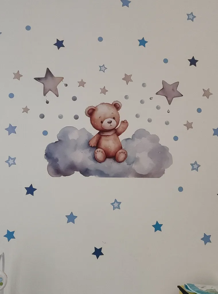 خریدار بدون نام : اندازه و کیفیت چاپ و جنسش و چسبش عالی بود من واسه اتاق پسرم ک منتظر اومدنشیم گرفتم برای تم تدی و تم آبی و طوسی و سفید بنظرم عالی من با ستاره هایی ک خودم از دیجی کالا گرفتم ترکیبی زدم