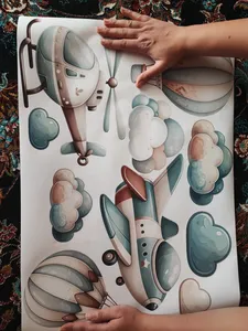 استیکر دیواری کودک راتیانا مدل رویای خرس های خلبان 2 بسته 23 عددی