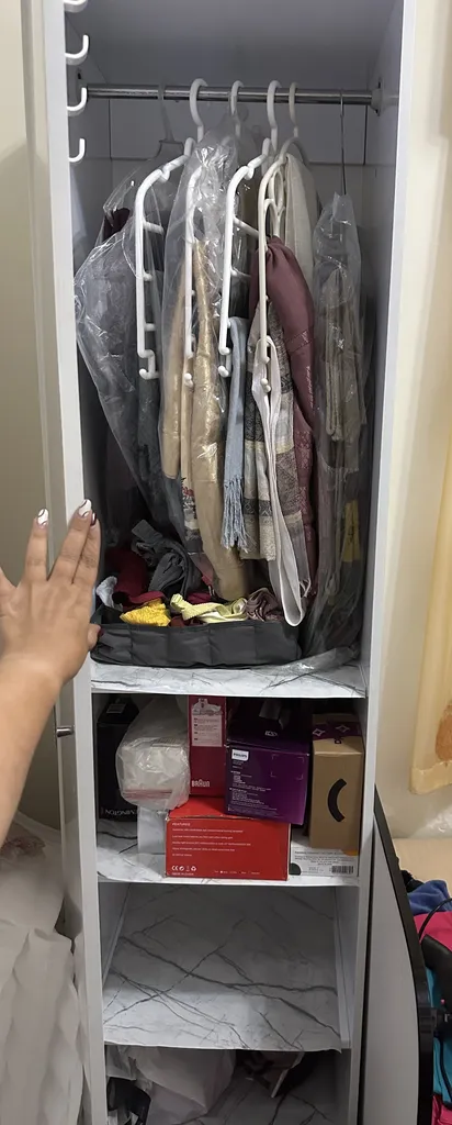 - ⬤ آویز : آویزها برای نگهداری لباسها به صورت آویزان طراحی شدهاند. خریداران از قابلیت استفاده آسان و صرفهجویی در فضا راضی بودهاند. اما برخی از آنها به عدم استحکام کافی در برخی مدلها اشاره کردهاند و نگرانیهایی درباره تحمل وزن لباسها داشتهاند.