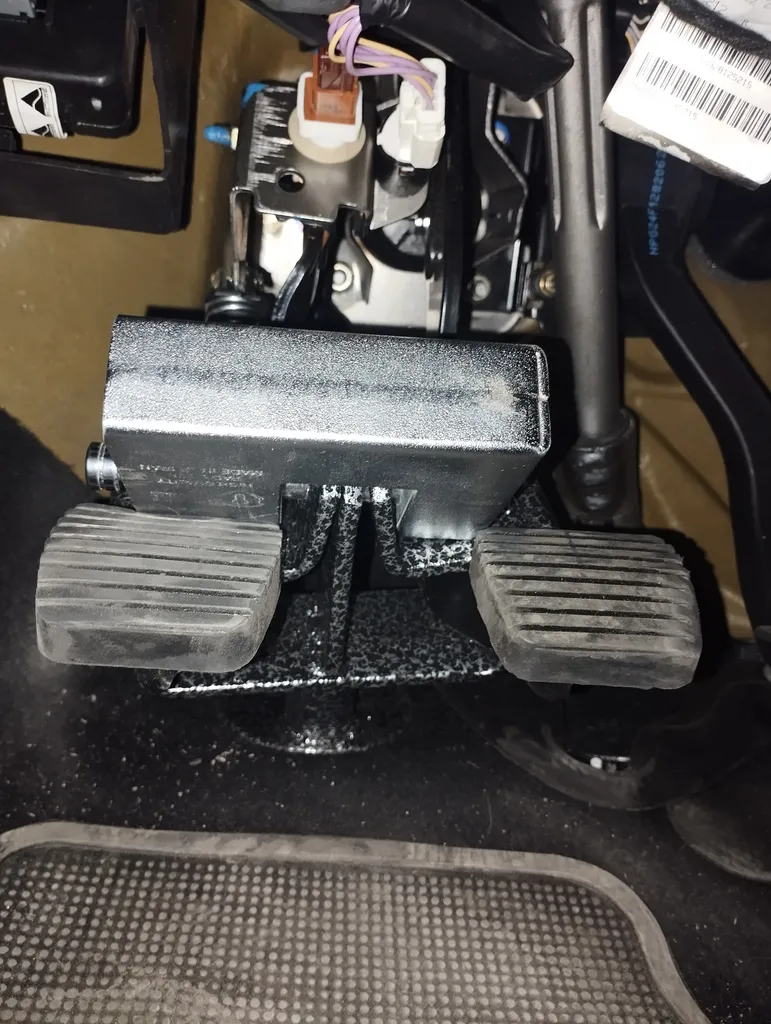 از لحاظ ورق استفاده شده ورق 5 میل ذخیم استفاده شده که بسیار محکمه کلیدش هم با کلیدهای معمول متفاوته دوستانی که گفتن سخت باز و بسته میشه فیلم گذاشتم که راحت باز و بسته میشه فقط باید کلید درست جا بندازی یه اهرم داره که باید بالا بکشی تا بسته بشه اگه اهرم پایین تر هم باشه باز قفل میشه و تا جایی بالا میاد که زیر پدال شما فضا کافی وجود داشته باشه و همین مزیت باعث میشه بتونین لقی قفل رو کنترل کنید و برای هر ماشین متناسب با آن ماشین اهرم را بالا بکشید . برای ساینا کاملا فیت هست و اهرم تا بالا میاد. مورد مهمتر اینه که با توجه به بلندی بیشتر نسبت به بقیه قفل پدال ها از بیرون ماشین قفل پدال قابل روئیت هست که باعث میشه سارق خودرو منصرف بشه و برای باز کردن درب خودرو تلاش نکنه و به خودرو آسیب نزنه