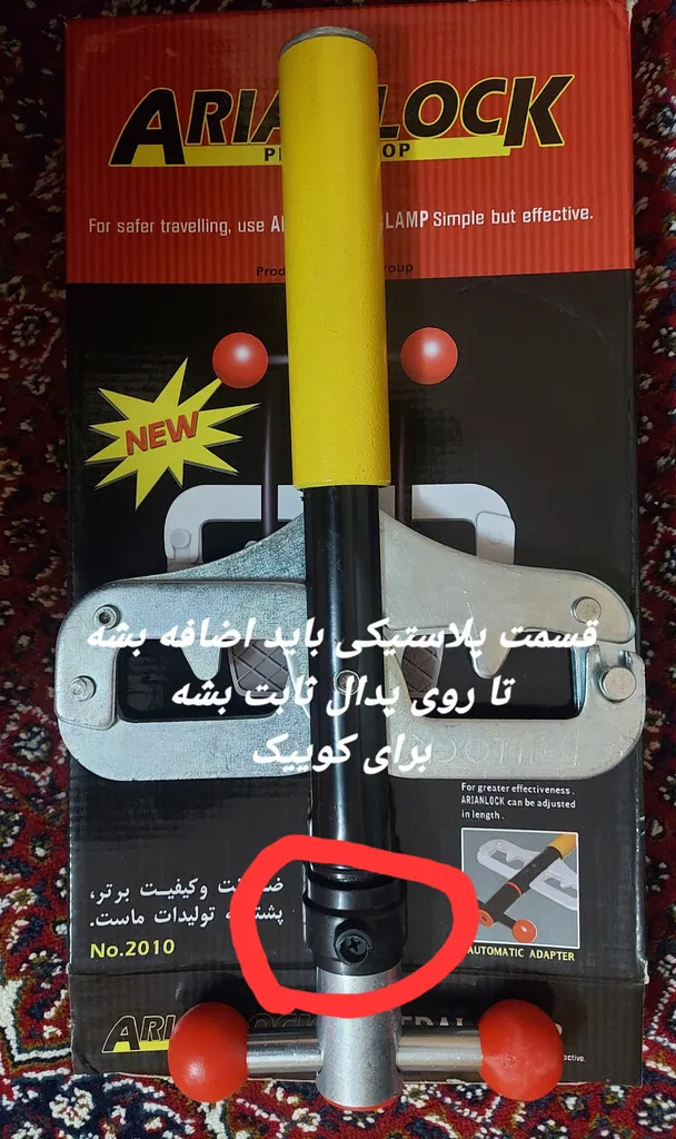 • نوید زارعی : قفل پدال و فرمان ؛ به ظاهر که قفل محکمی میخوره. اگه یه 2 تا شیار بیشتر داشت که تا جایی که میشه سفت ببندی دیگه کلا نمیتونستی فرمانو بچرخونی. تو پژو 207 اگه به قسمت پایین فرمان وصل کنی تقریبا به اندازه یه ربع دایره به راست یا چپ میشه چرخوند.من که همزمان از قفل پدال هم استفاده کردم. به نظرم اگه برعکسم وصل کنی که قسمت ثابت روی فرمون بیاد (یکم سخت روی فرمان جاگیر میشه) ولی باز کردنش برای دزده سخت تره چون به قسمت شیار قفل دید نداری و باز کردنش برای خودت که کلید هم داری سخت تره