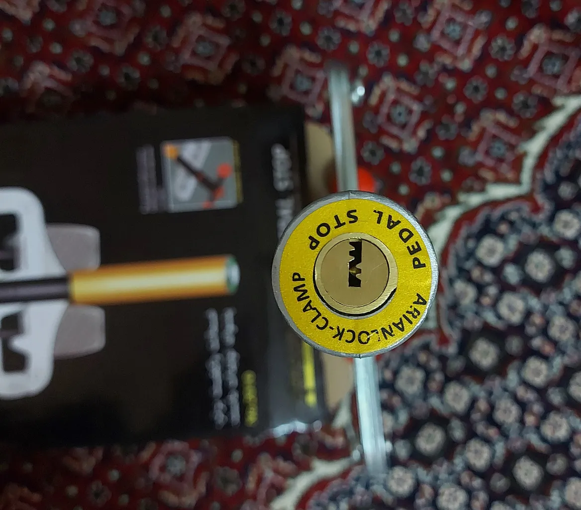 • محمد رضا حسن زاده : قفل پدال ؛ درکل قفل خوبیه سنگین و محکم فنر خوبی داره، با یه فشار بسته میشه و با چرخوندن کلید به کمک فنر بصورت کامل باز میشه نوع کلیدش با نوعی که توی عکس هست فرق داشت که اتفاقا خدا خدا میکردم مثل توی تصویر نباشه ! کلیدش یه جفت کامپیوتری معمولی هستش، که کیفیتش بدک نیست دو تا قطعه اضافه هم داره که نمی دونم به چه دردی میخورن و هیچ راهنمایی هم نداره !