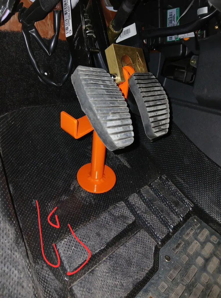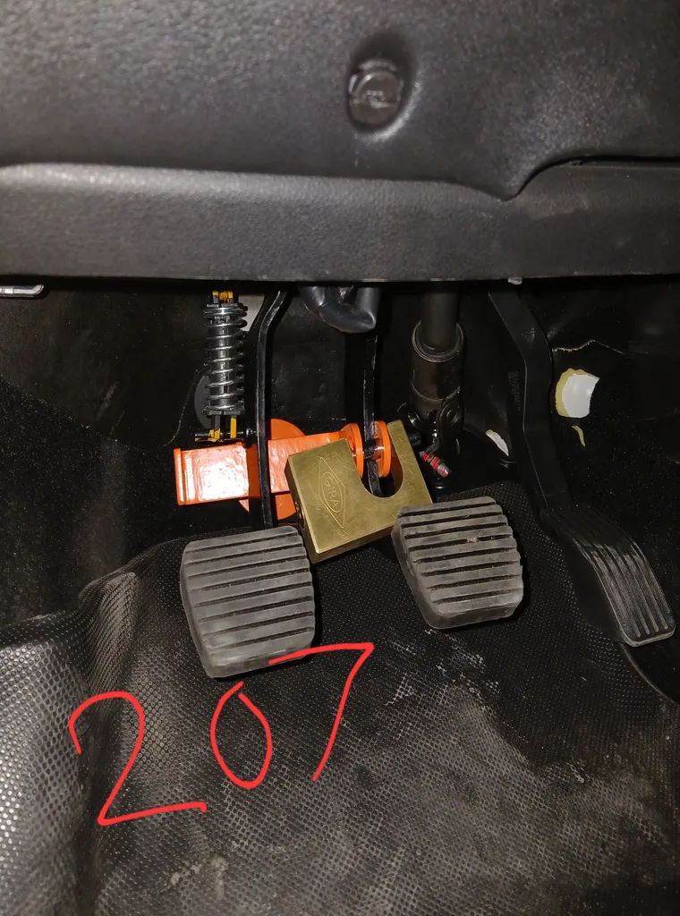 مورد مهمتر اینه که با توجه به بلندی بیشتر نسبت به بقیه قفل پدال ها از بیرون ماشین قفل پدال قابل روئیت هست که باعث میشه سارق خودرو منصرف بشه و برای باز کردن درب خودرو تلاش نکنه و به خودرو آسیب نزنه