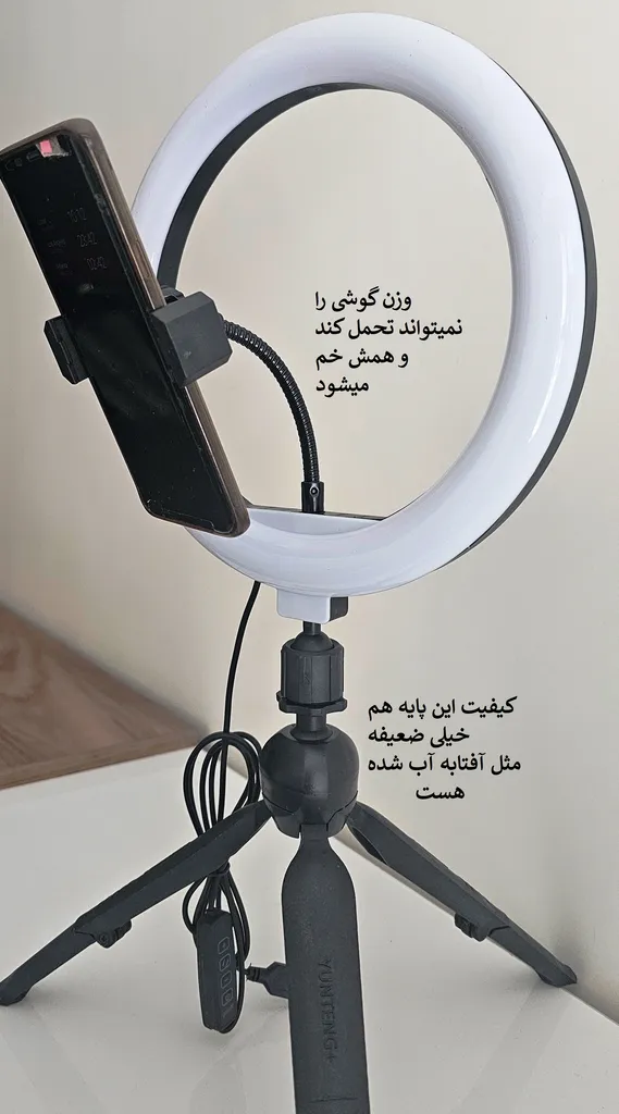 - ⬤ نگهدارنده گوشی : نگهدارندههای گوشی به کاربران این امکان را میدهند که گوشیهای هوشمند خود را به راحتی در کنار نور ثابت قرار دهند. خریداران از قابلیت تنظیم و استحکام این نگهدارندهها راضی هستند و آنها را برای عکاسی و فیلمبرداری با گوشیهای هوشمند بسیار مفید میدانند. با این حال، برخی از کاربران به کیفیت ساخت پایین و عدم سازگاری با برخی مدلهای گوشی اشاره کردهاند. همچنین، نگهدارندههای با طراحی انعطافپذیر و قابلیت تنظیم زاویه بیشتر مورد توجه قرار میگیرند.