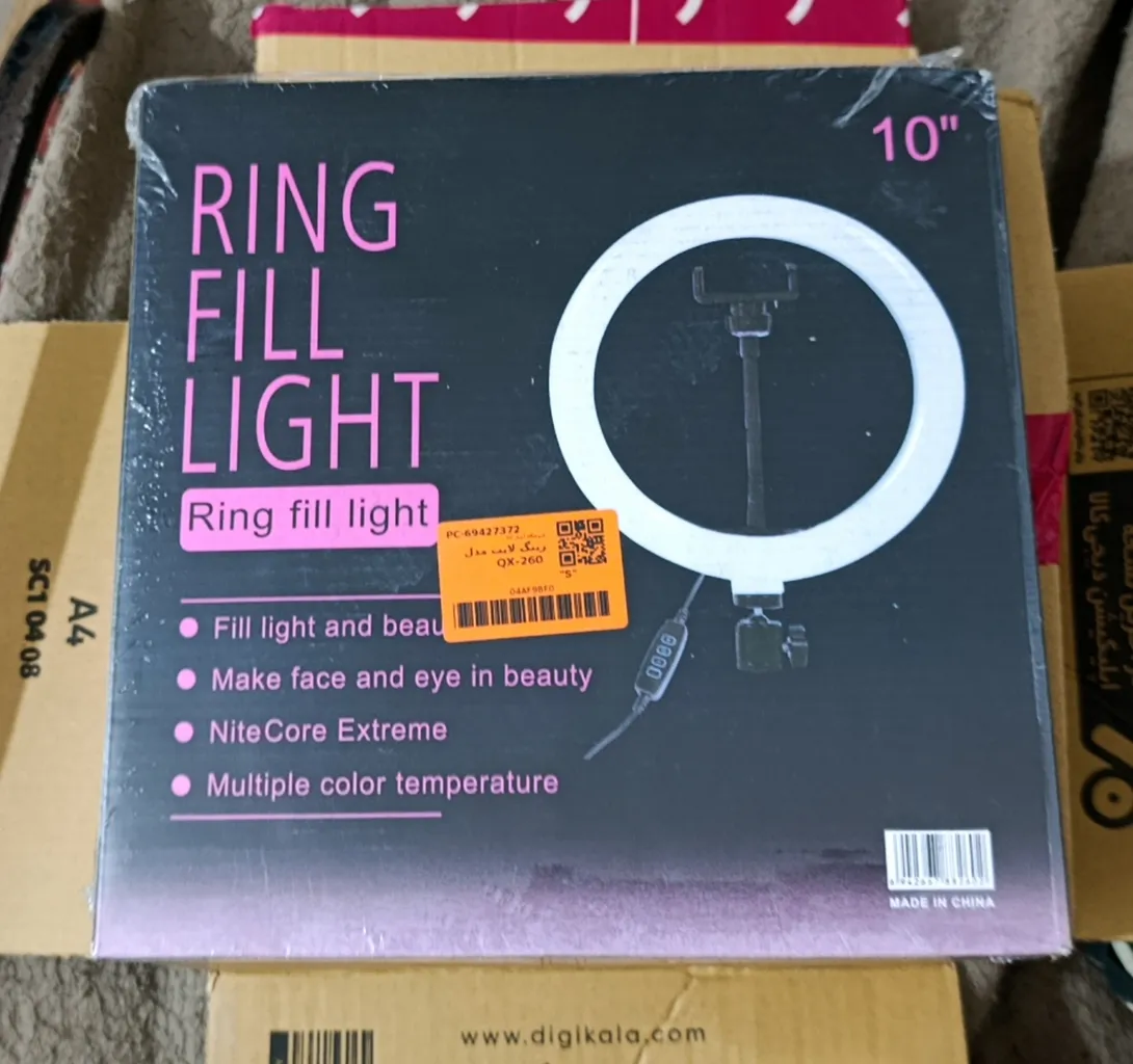 - ⬤ نور ثابت رینگ لایت : این نوع نور به خاطر طراحی خاص خود و قابلیت تنظیم نور در زوایای مختلف بسیار محبوب است. خریداران از رینگ لایتها به خاطر نور یکنواخت و قابلیت تنظیم دما و رنگ راضی هستند. این نوع نور معمولاً برای عکاسی پرتره و ویدیوهای آموزشی استفاده میشود. با این حال، برخی خریداران به کیفیت ساخت پایین و عدم ثبات در برخی مدلها اشاره کردهاند.
