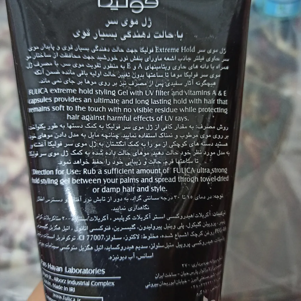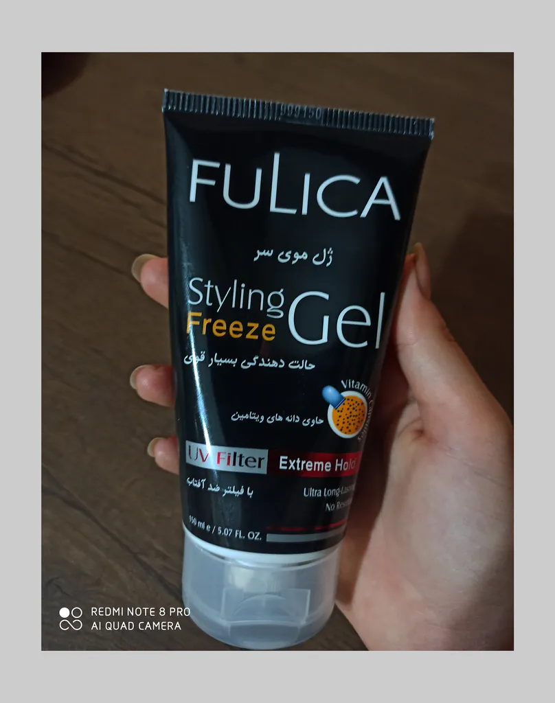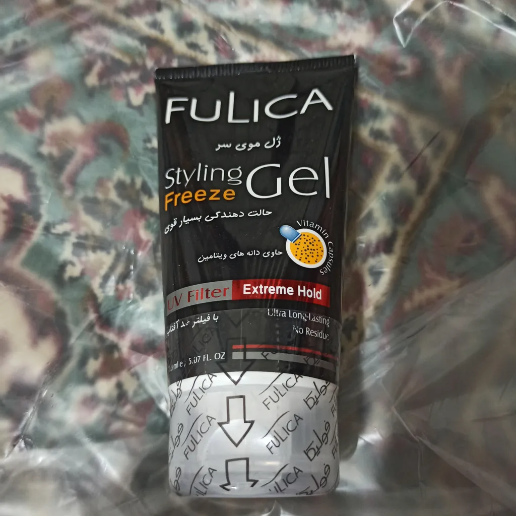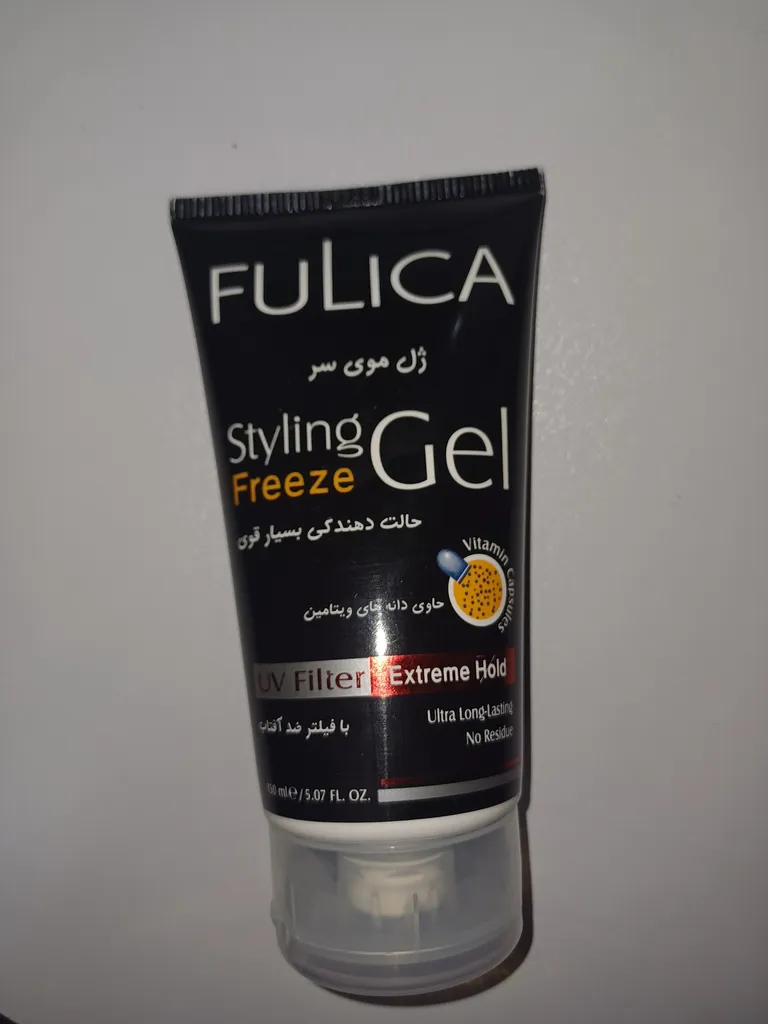 ژل مو فولیکا ؛ تو این برند من سامپو بدن هم داستم راضی بودم موهای من خشک و فر این ژل برای موهای فر خیلی خوبه غلیظ هست ماندگاری بالا داره وز مو رو میگیره و فرهاتون باز نمیشه مواد مضر نداره عکساش گذاشتم ترکیباتش نوشته تاریخ مصرفشم خوب بود