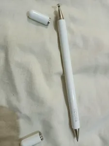 - ⬤ قلم لمسی دوکاره : این قلمها معمولاً دارای دو سر هستند، یکی برای نوشتن و دیگری برای طراحی. خریداران از این نوع قلمها به دلیل چندمنظوره بودن و راحتی در استفاده راضی هستند. این قلمها به کاربران این امکان را میدهند که بدون نیاز به تعویض قلم، از هر دو قابلیت استفاده کنند. اما برخی کاربران به کیفیت پایین نوکهای دوکاره و عدم دقت کافی در هر دو حالت اشاره کردهاند که میتواند تجربه کاربری را تحت تأثیر قرار دهد.