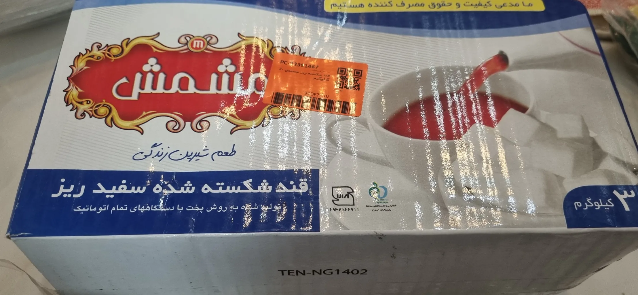 نظر و تجربه خرید قند شکسته ریز مشمش -3 کیلوگرمدر تاریخ ۲۲ فروردین ۱۴۰۳