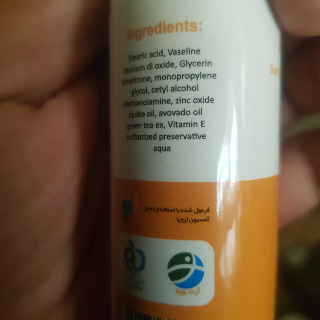 بیشتر زینک اکسایده و اینکه چون ایرانیه ظرف ضد آفتاب خیلی ضعیفه ،درپوشش سفت بود دو بار باز کردم تیکه ی بالای ظرف جدا شد و ظرف ضد آفتاب خراب شد نسبت ب قیمتش متاسفانه کالا ضعف زیاد داشت،من دور درش چسب زدم