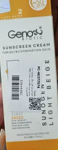 کرم ضدآفتاب بیرنگ ژنوبایوتیک SPF50 مدل 01 محافظ UVA ،UVB، مناسب پوستهای مختلط و چرب، حجم 50 میلیلیتر