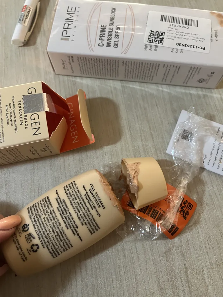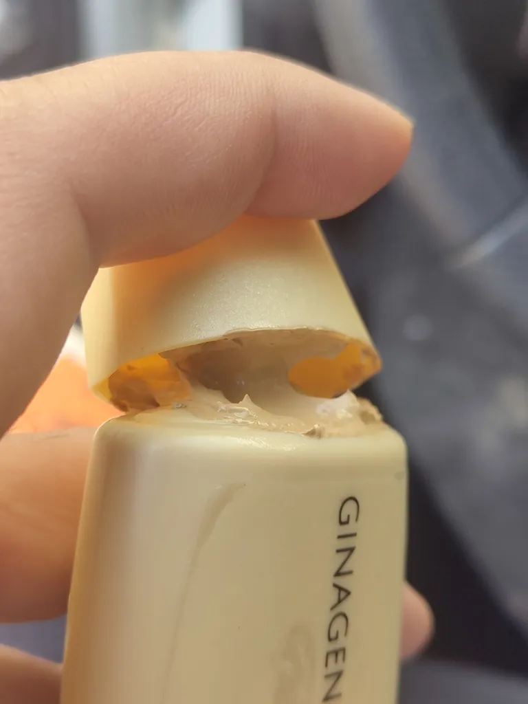 کرمی که برام ارسال کردن بالای جعبش کمی پارکی داشت و پلمپش باز شده بود و در خود کرم هم شکسته شده بود
