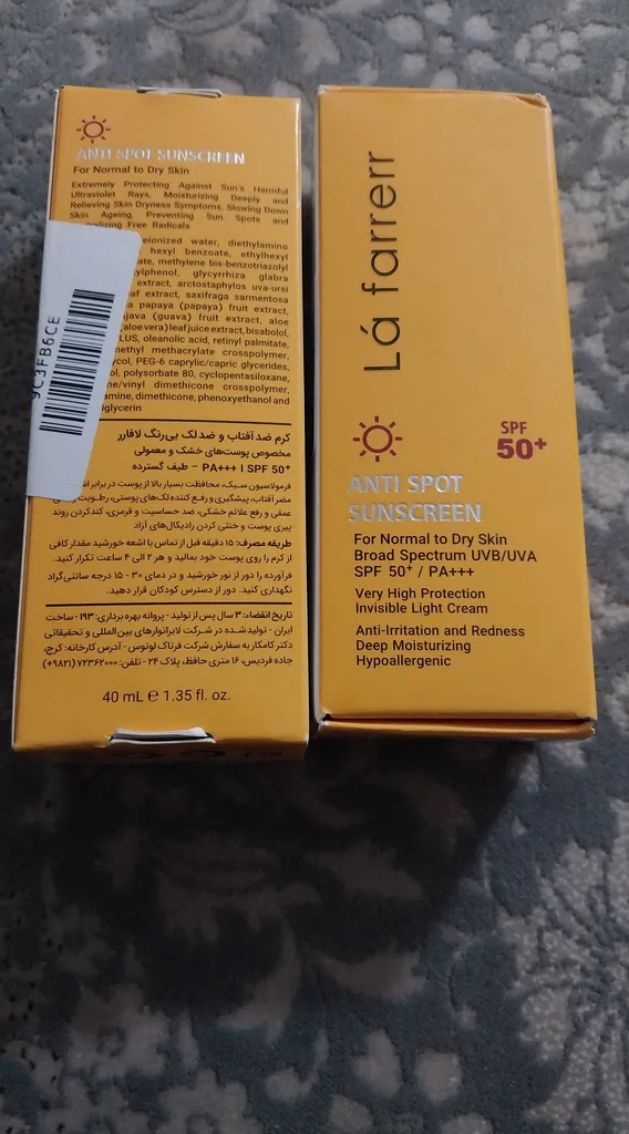 ضدآفتاب لافارر سبک ، زود جذب و بسیار مفید برای آفتاب ، رد سفیدی هم نمبنداره برای من ، باهاش جوش نزدم ، صورتمم باهاش ی جورایی مخملی میشه ، خوشبختانه در تاریخ دار بود و مشکلی نداشت